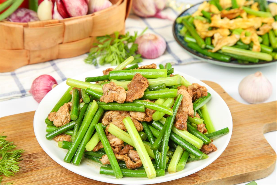 推荐做法:蒜苔炒肉丝(少量瘦肉提味就行)