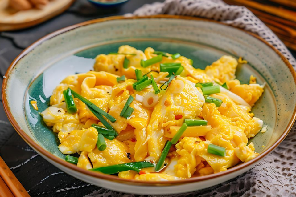 倒回鸡蛋,翻炒几下,撒葱花出锅。